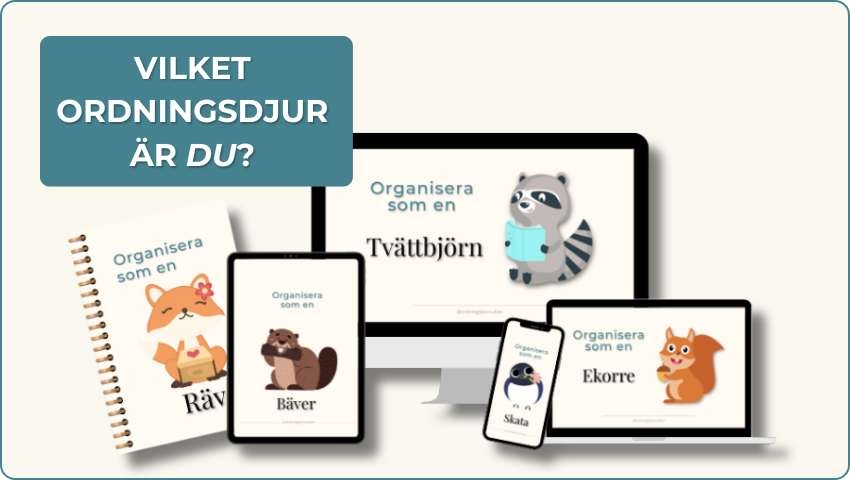 Det finns fem olika organiseringspersonligheter – fem “Ordningsdjur” - som representerar olika styrkor och utmaningar. När du förstår din egen organiseringspersonlighet, blir det mycket lättare att rensa, organisera och skapa ordning som faktiskt håller över tid.