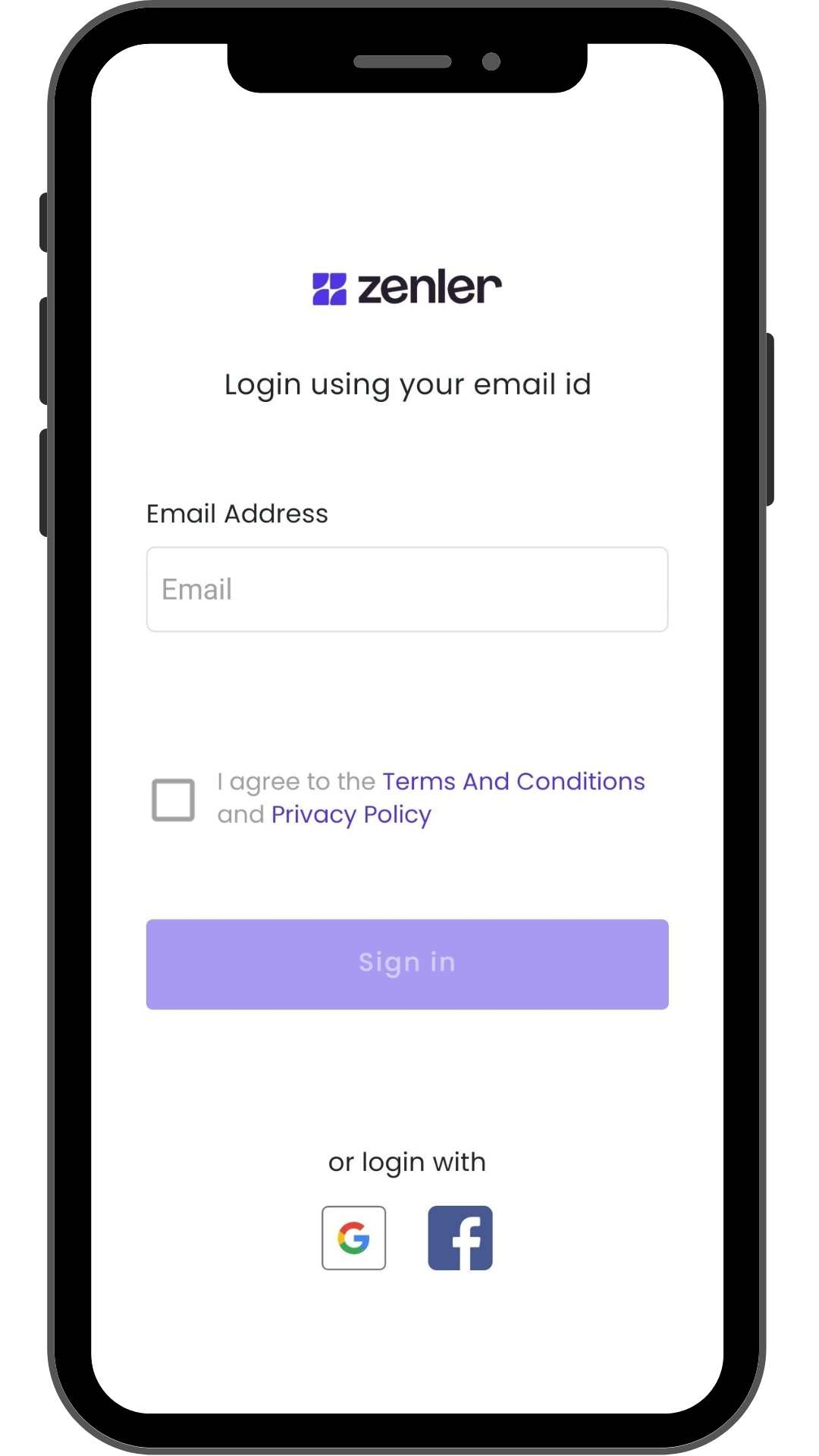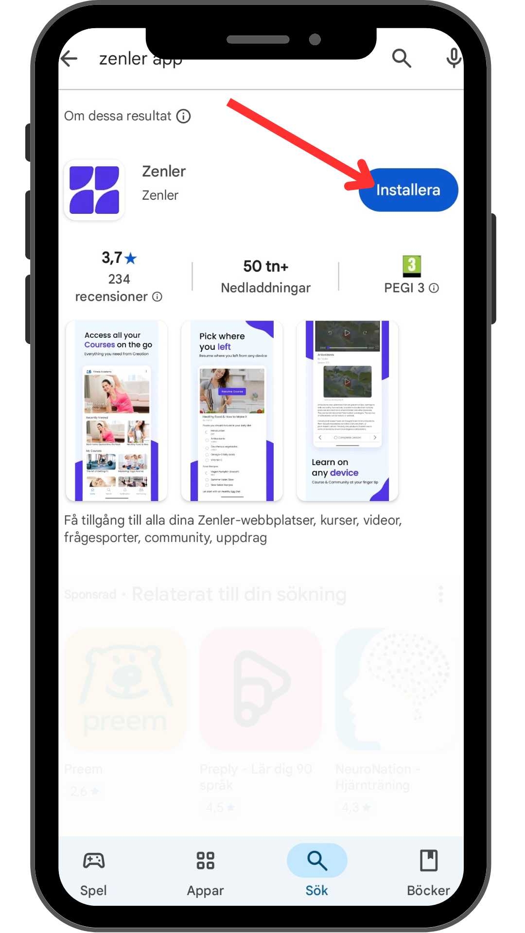 Sök upp Zenler-appen (det är namnet på plattformen för Appen) i Play Butiken om du är på en Android, eller i App Store om du har en iPhone.